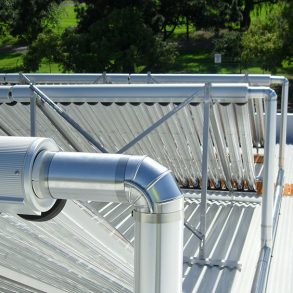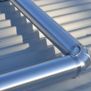 “No riveting. No screws. Soft profile. Interlocking system. 90 degree elbows available. 45 degree elbows available. 3 finishes- aluminium, stainless steel, colour bond. 14 standard pipe sizes”